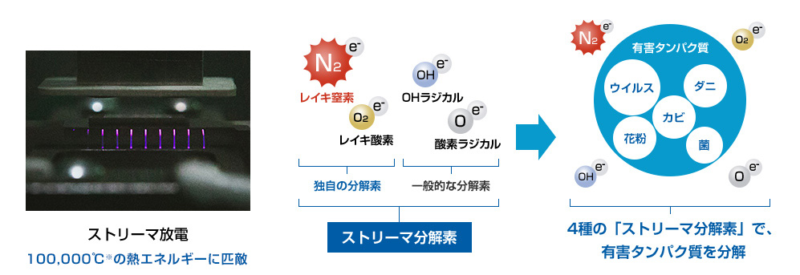 ストリーマはプラズマ放電の一種で、酸化分解力の高いイオンを発生させます。